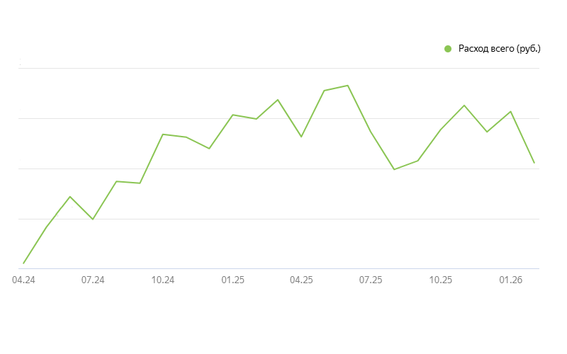 Дано: аккаунт Яндекс.Директ с 59! рекламными кампаниями и месячным бюджетом 1,5-2 млн. руб. Реклама ведётся с апреля 2024 г., основная цель: «Ecommerce: покупка», стоимость конверсии находится в диапазоне 400-500 руб. Количество заявок: 2,5-3,5 тыс./мес. (максимум: 4.942 в январе 2025 года).