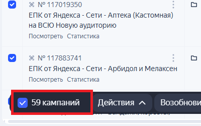 59 кампаний в аккаунте